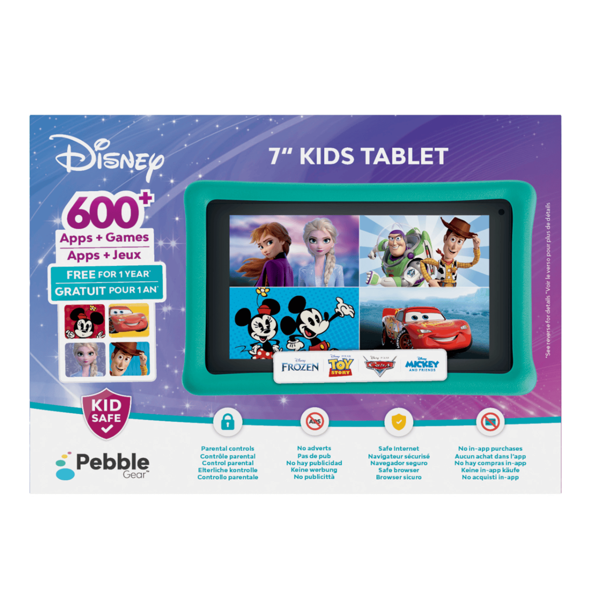 - Learn and play with your favourite Disney and Pixar characters on the Pebble Gear 7-inch Kids Tablet.
